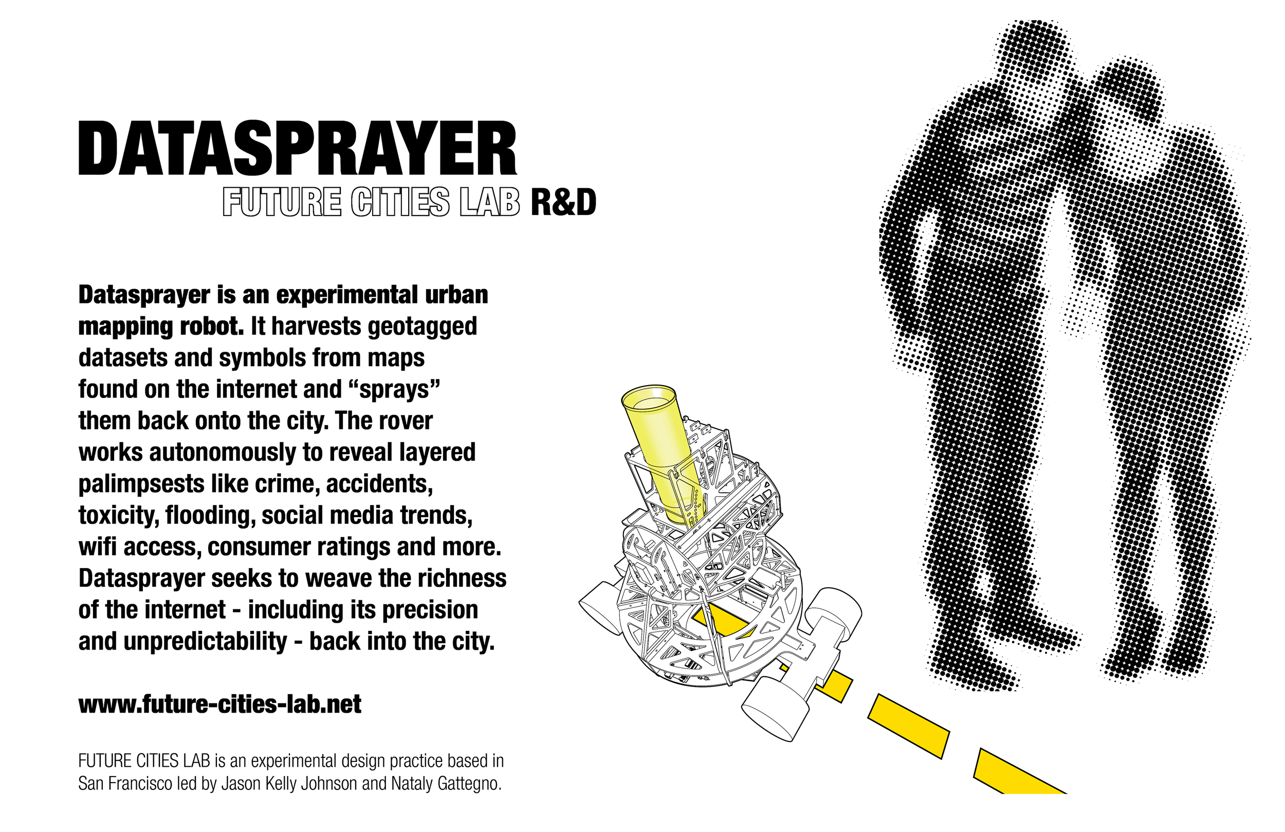 Datasprayer is an experimental urban mapping robot. It harvests geotagged datasets and symbols from maps found on the internet and “sprays” them back onto the city. The rover works autonomously to reveal layered palimpsests like crime, accidents, toxicity, flooding, social media trends, wifi access, consumer ratings and more. Datasprayer seeks to weave the richness of the internet - including its precision and unpredictability - back into the city.